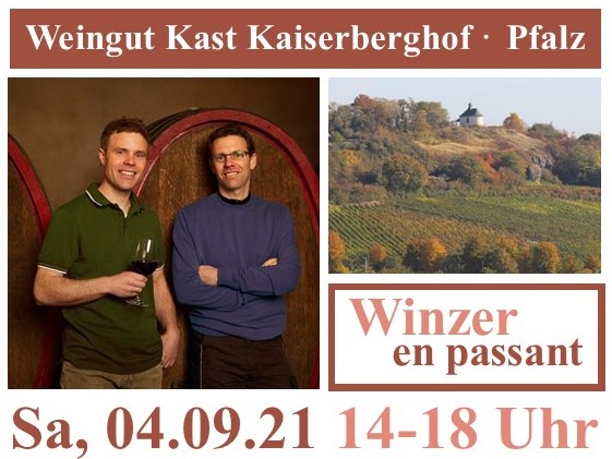 Am Samstag, 4. September 2021, von 14-18 Uhr, sind Marco und Michael Kast vom Weingut Kast Kaiserberghof aus Ilbesheim in der Pfalz zu Gast in der WeinSocietät. Was sie kredenzen – das probieren Sie am 4. September!