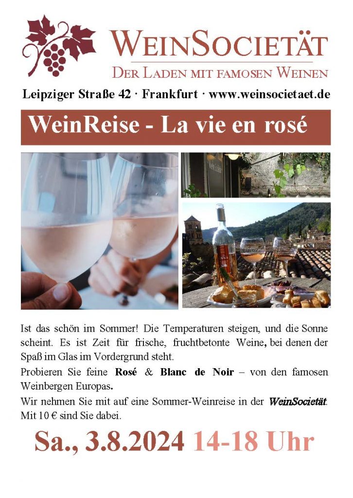 …auf jeden Fall im Glas! Am Samstag, 3. August 2024, von 14 bis 18 Uhr, in der WeinSocietät: