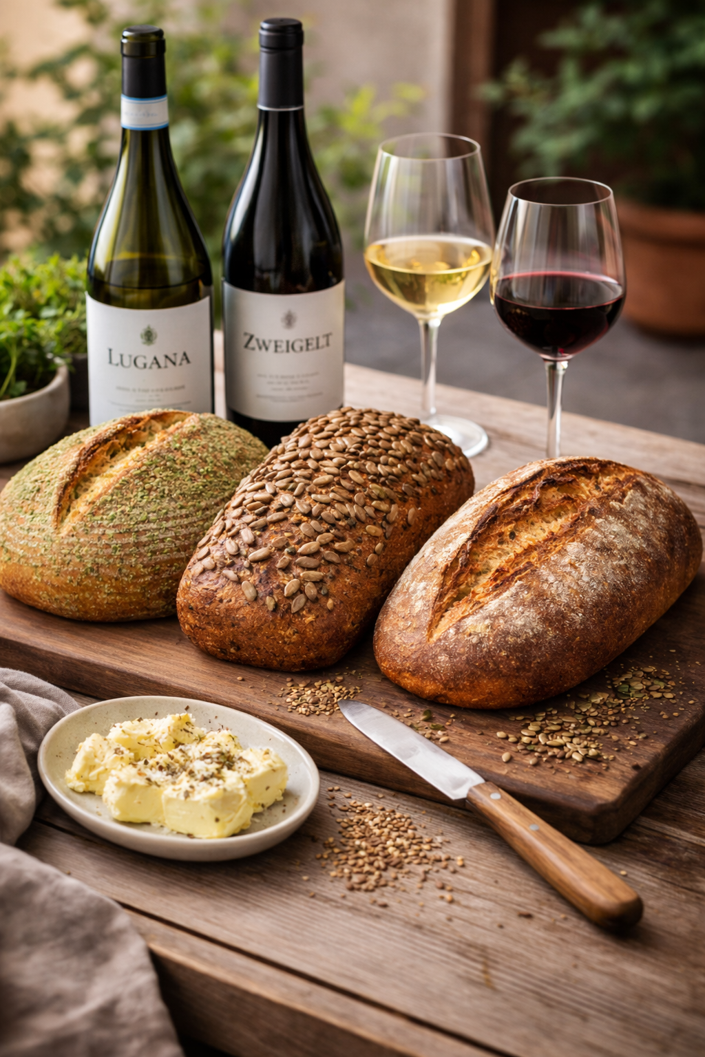 Freuen Sie sich auf eine sinnliche Geschmacksreise mit 6 ausgewählten Weinen und 3 feinen Sauerteigbroten.